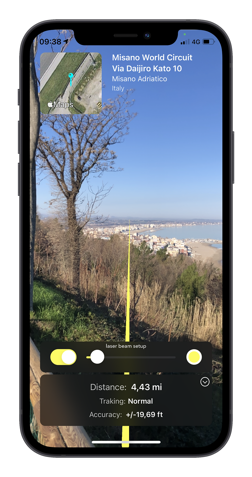 Activate AR by clicking on the icon next to the name of the place. Move your iPhone to find the right direction of the place you are looking for. A colored laser beam will appear to help you.